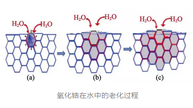 ②隨后,環境中的水分通過微裂紋滲透到材料內部,進一步引發材料內部的氧化鋯發生t→m轉變。