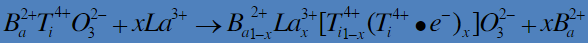 1.施主摻雜半導(dǎo)體化,一般高價(jià)摻雜La3+、Y3+、Sb3+、Nb5+、Ta5+